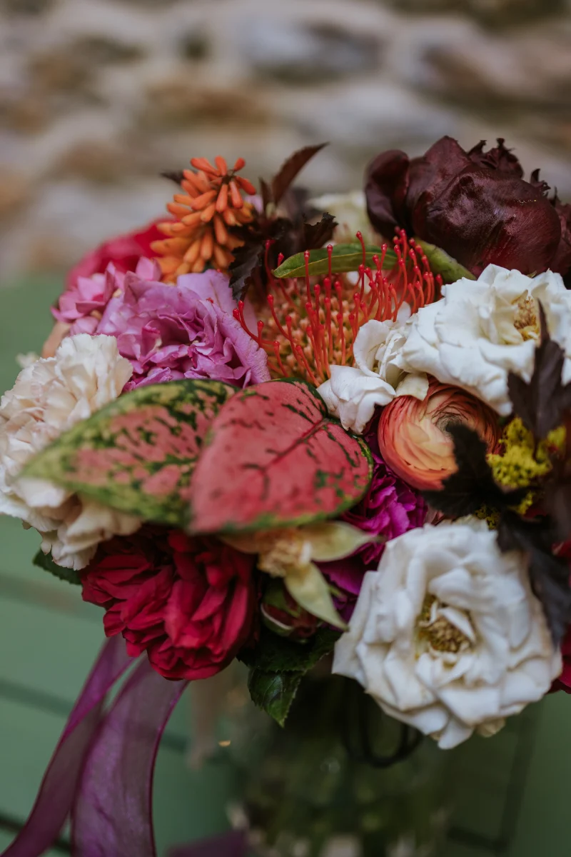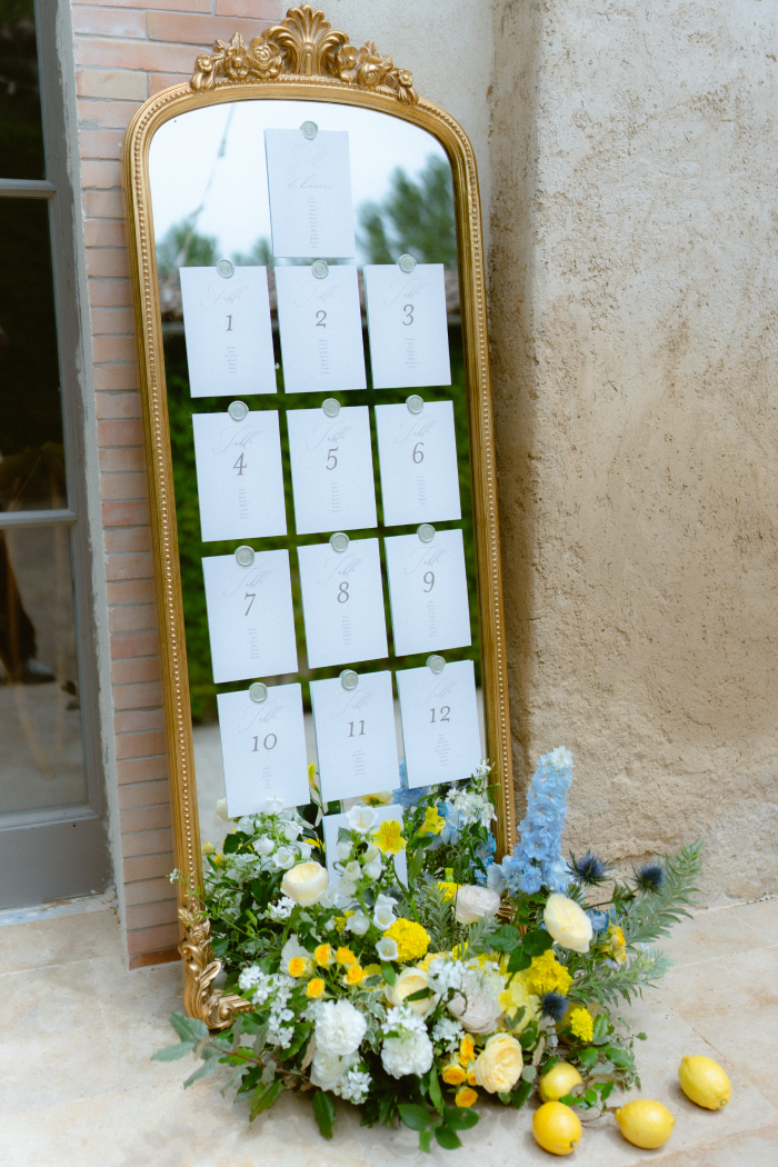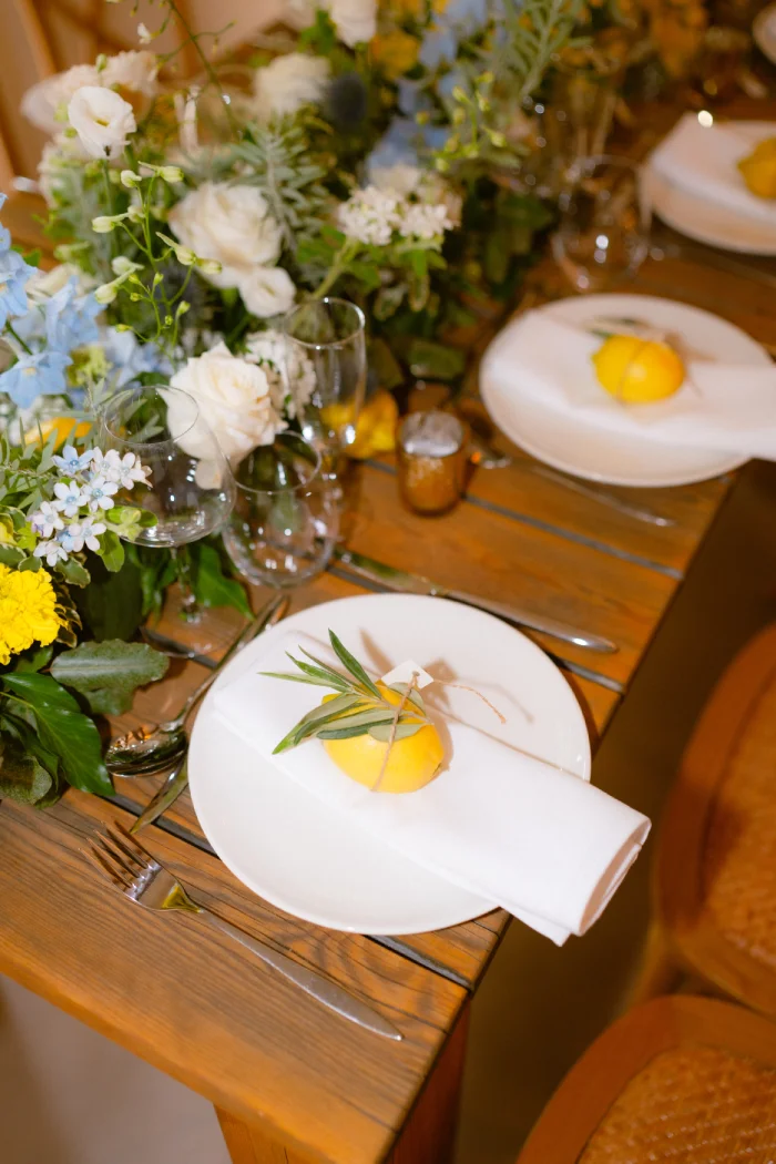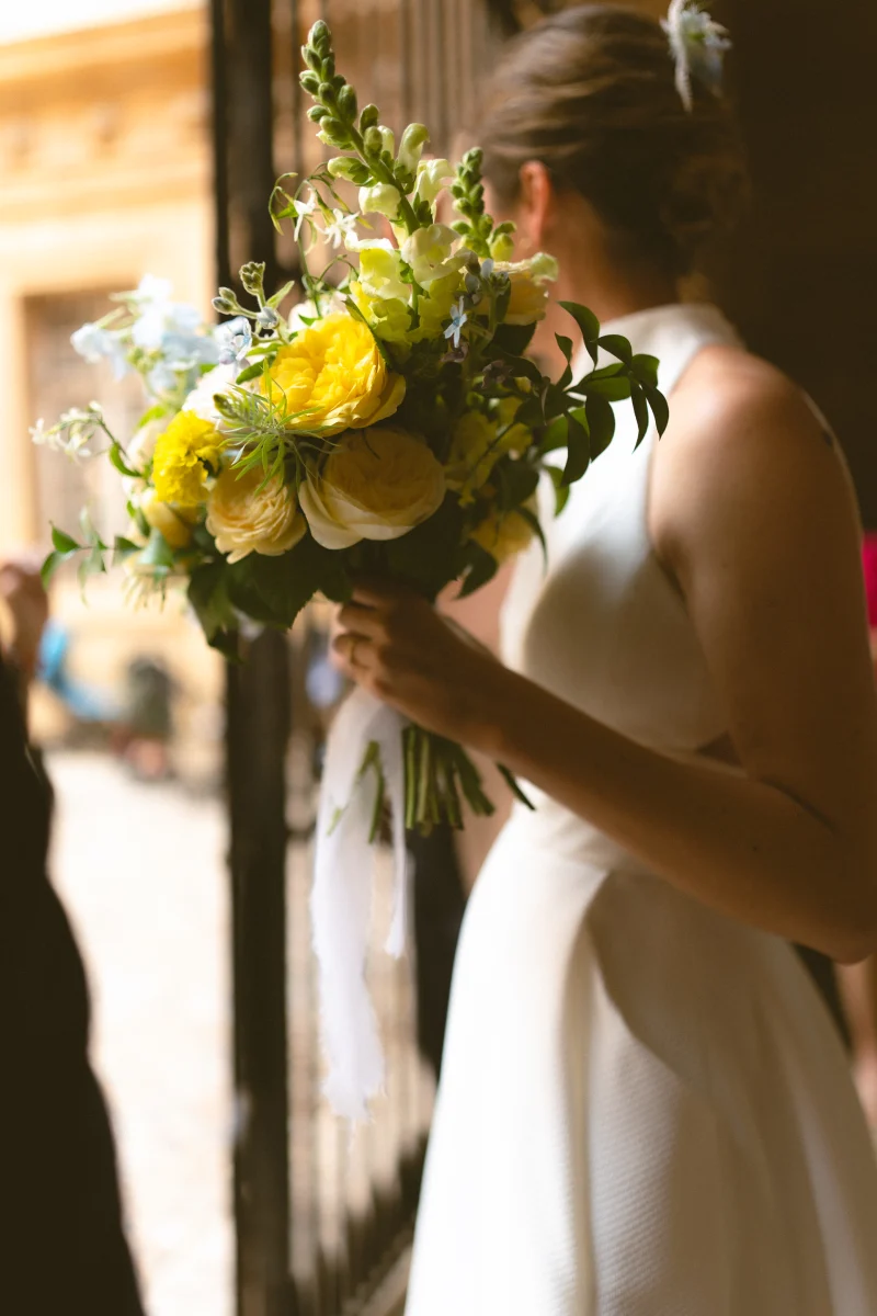 Découvrez le décor floral enchanteur de Marion & Jeremy : Des compositions florales fraiches et colorées sur le thème de l’Italie. Ici vous retrouverez des bouquets et décorations florales transmettant l’univers de la Dolce Vita : Les variétés de fleurs méticuleusement choisies, sont mêlées entre elles pour proposer des arrangements floraux Délicats et soignés. L’ensemble propose ainsi un univers pep’s, avec un bouquet de mariée déstructuré. Ainsi le citron viens souligner le thème choisi par les mariés, originaires de Sirmione.