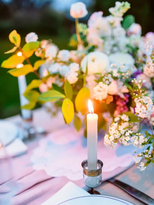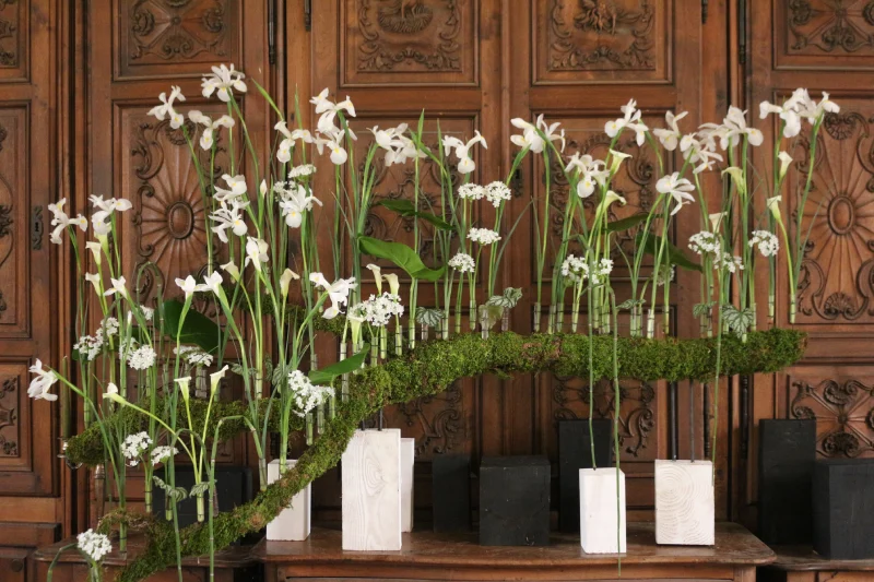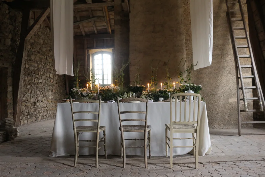 C’est un tout autre décor qui vous est présenté grâce à l’union de Josephine et Charles au château d’Avauges à Saint-romain de Popey. Lors de notre rencontre avec eux, nous avons beaucoup travaillé sur leur univers. Amoureux des étangs de la Dombes, les variétés de fleurs ont étés sélectionnées en lien avec les paysages qui sillonnent les berges. Notamment, les compositions florales faites d’Iris et de fleurs d’ail sauvages en sont les plus grands messagers. Vous découvrirez également un centre de table mêlant tradition et sobriété. De quoi faire de ce mariage un événement inoubliable, tant pour les convives que pour nos deux amoureux.