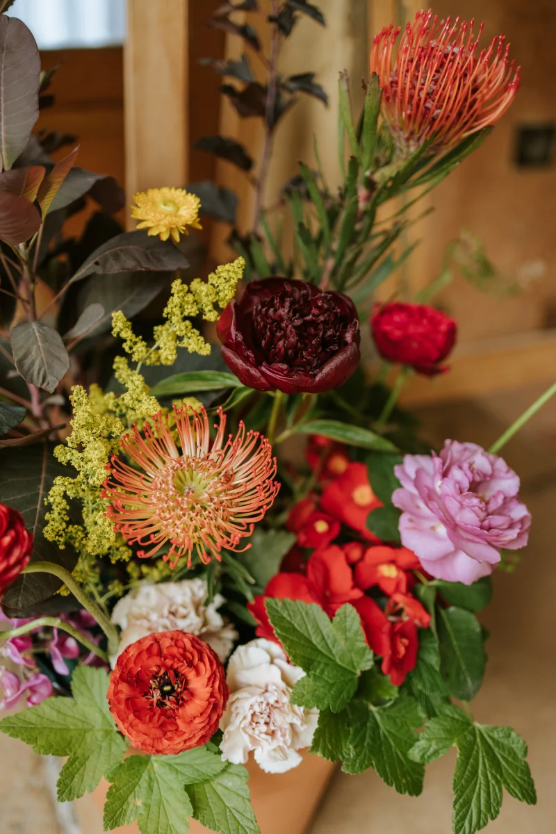 BRIN fleuriste mariage Lyon vous présente Zoé & Clément, deux amoureux du Terra cotta, des couleurs automnales et des compositions florales chaleureuses. Les roses et les dahlias donnent à l’ensemble un caractère rafiné, et s’accordent parfaitement à la décoration de table choisie par les mariés. Zoé et clement proposent ainsi un univers bercé par les couleurs du Mexique, pays dans lequel les deux amoureux ont voyagé plusieurs années. Ainsi, les couleurs de la végétation et de la terre argileuse ont été reprises dans l’ensemble des décorations florales pour cet événement unique.
